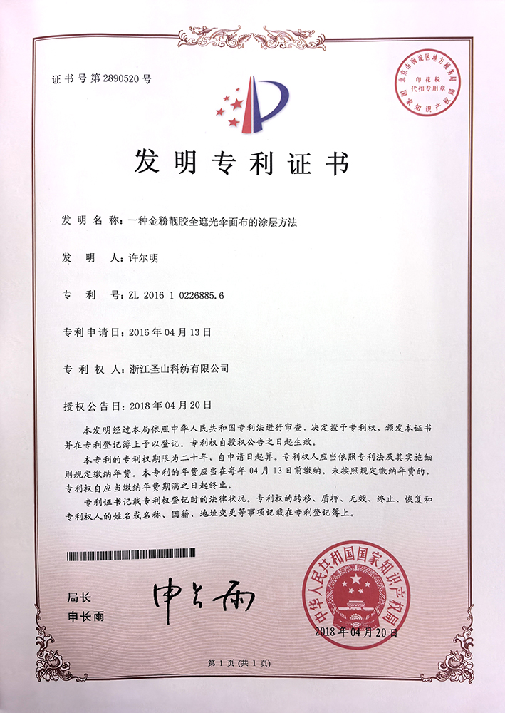 一种金粉靓胶全遮光伞面布的涂层方法