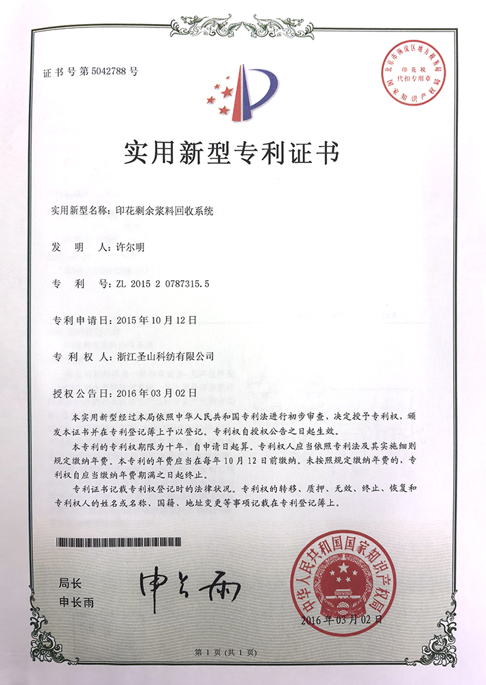 印花剩余浆料回收系统